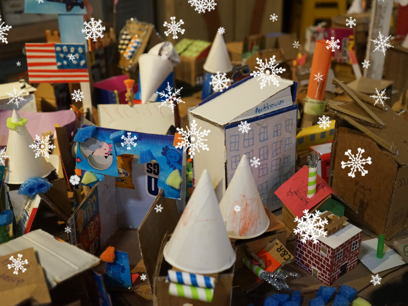 Dream big and craft small in Make this holiday season. Grab a piece of cardboard and design your own unique addition to our miniature winter wonderland. What will you add to our cardboard village? A crab shack? A yarn store? A dog park? Try out our ChompSaws and use your imagination to help our little community grown.
